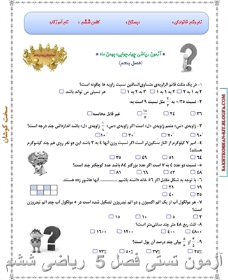 » آزمون تستی ریاضی فصل اول ششم