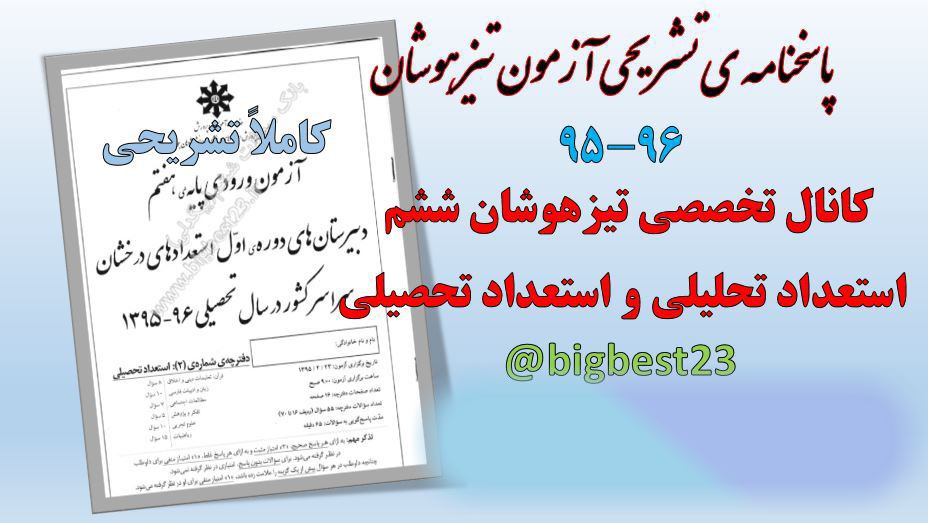 دانش آموزان گرامی سوالات تیزهوشان سال ۹۵ همراه با پاسخ نامه کاملا تشریحی(در آخرسوالات)