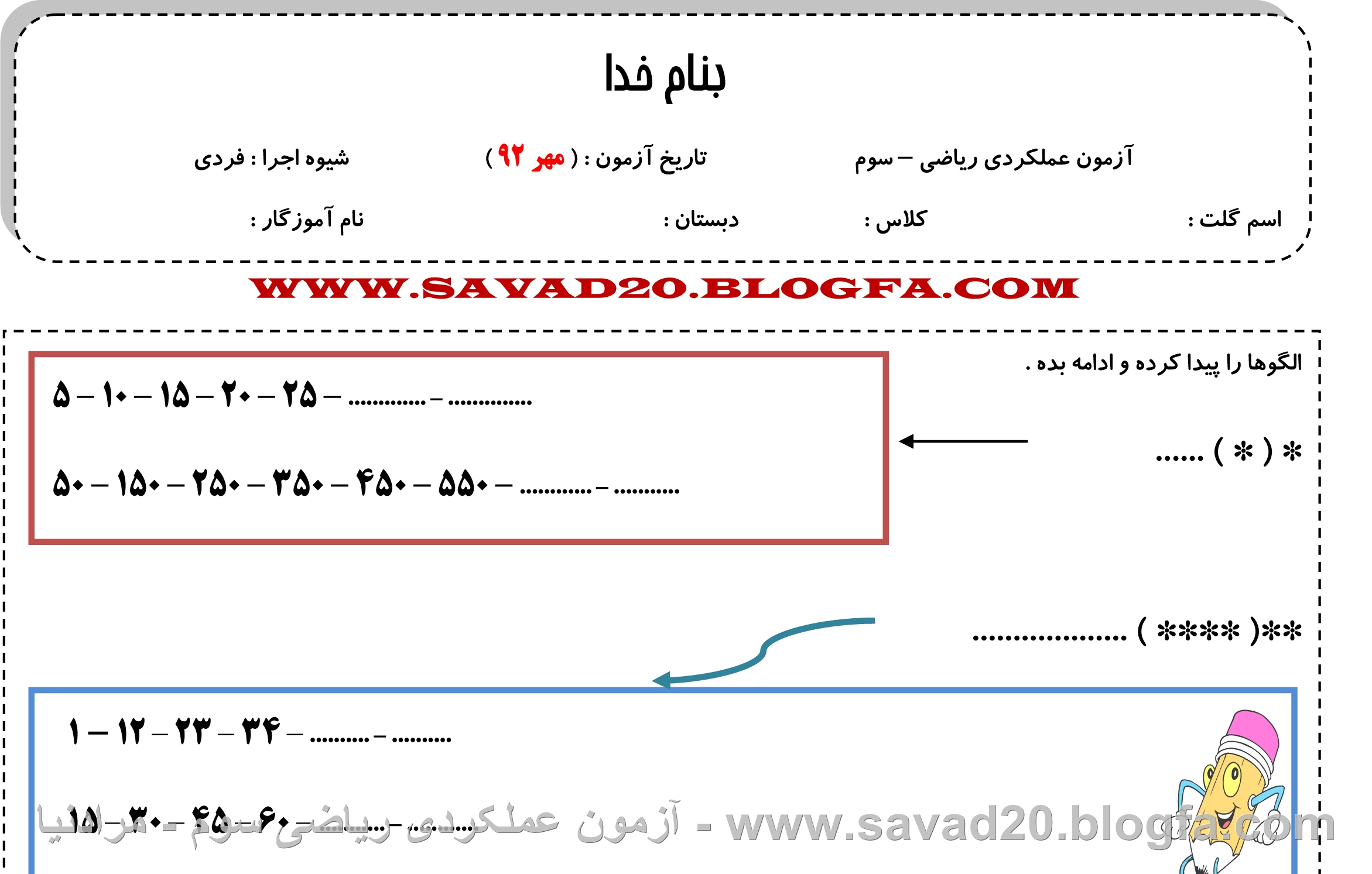 دانلود+ریاضی سوم دبستان+جدید+92-93