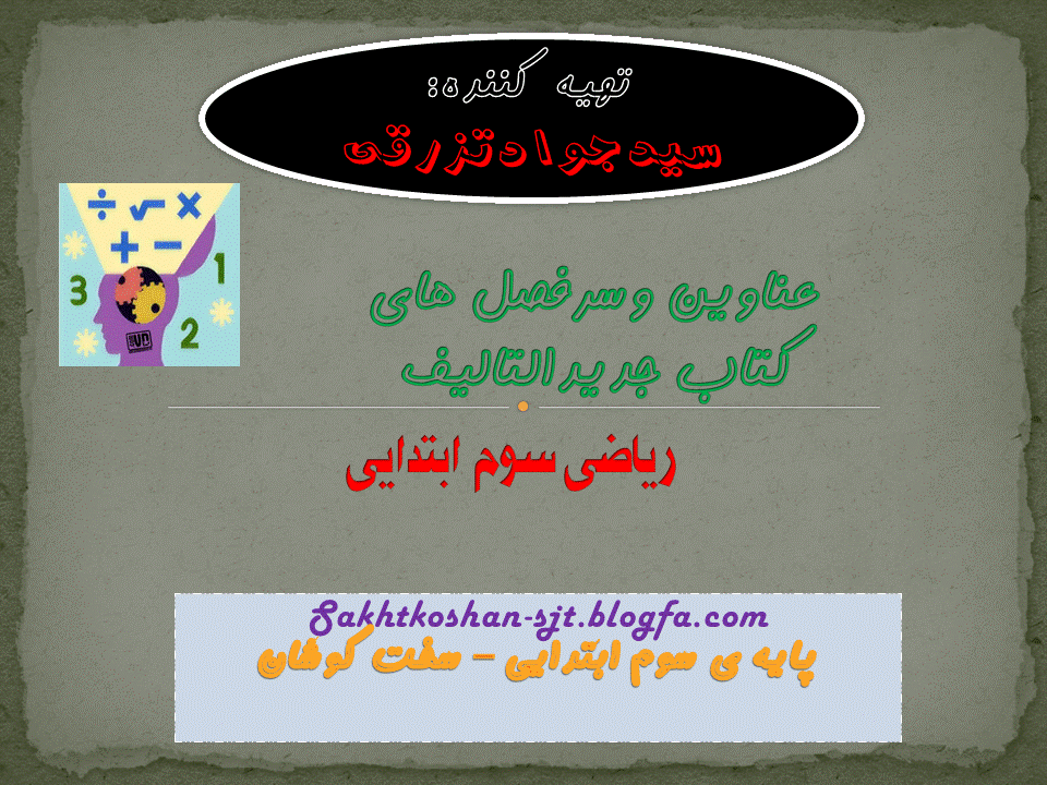 سرفصل هاوعناوین دروس ریاضی جدیدپایه ی سوم ابتدایی | 5/52MB |