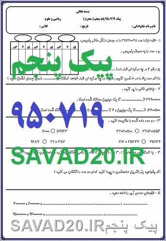 پیک پنجم+ریاضی و علوم+950719+قالب ورد+قابل ویرایش